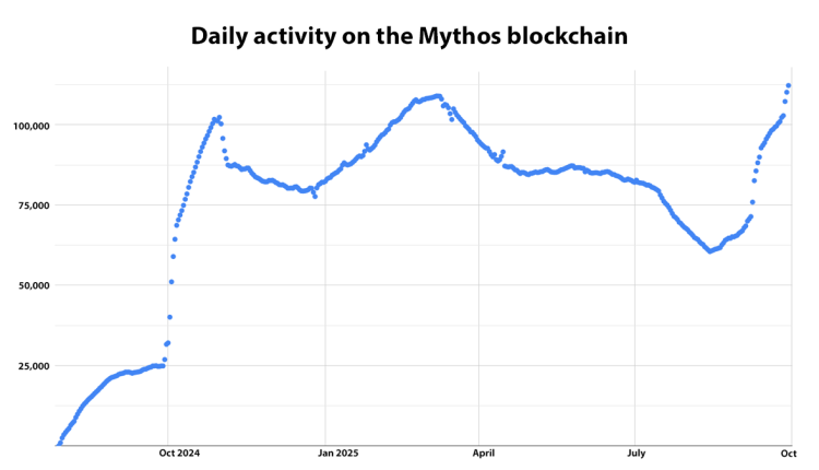 As Pudgy Party hits 1 million mobile downloads, Mythos chain hits ATH of 112,249 DAUWs